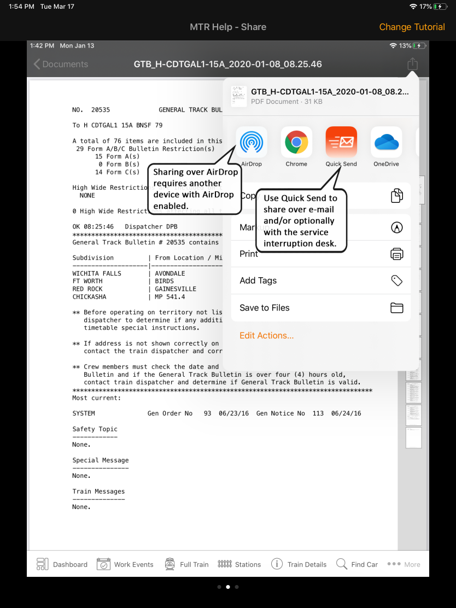 BNSF train crews are trained to provide their train list documents to first responders in the event of an incident. With electronic train lists the document can be provided to first responders through the following methods: